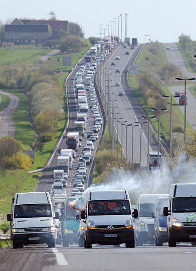 图:法国渔民封锁渡口造成车辆大拥堵(3)