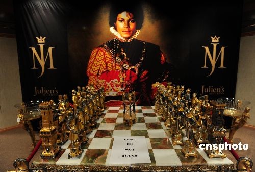 当地时间4月15日,1400多件美国“流行天王”迈克尔·杰克逊(Michael Jackson)的私人物品继续在贝弗利山庄向公众展出。这些物品来自迈克尔·杰克逊曾经拥有的“梦幻庄园”。朱利安拍卖行原计划下周拍卖这些物品,原先估计拍卖总金额将达上千万美元。但拍卖行与杰克逊方面最终达成和解,所有物品将在展览结束后归还给迈克尔·杰克逊。中新社发 张炜 摄