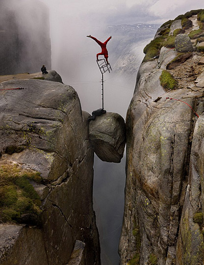 图:挪威艺术家300多米悬崖边演绝技(2)