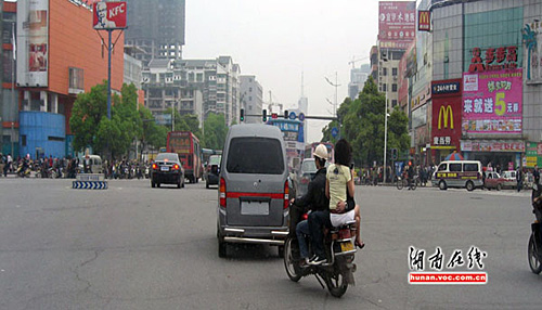 图:情侣街头打摩的 坐姿堪比杂技表演(5)