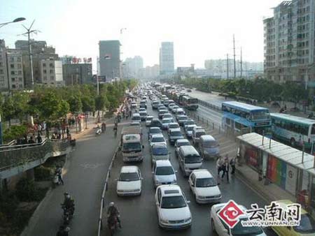 昆明北市区金星立交桥一带被水淹,水淹范围包括金星小区至金星立交桥,白云路与北京路交叉口(家乐福)。淹水平均深度达到40厘米,现场上千人交通受阻。很多金星小区居民只能脱掉鞋袜、卷起裤腿进出小区。白云路至凤凰新村之间的交通已接近瘫痪。