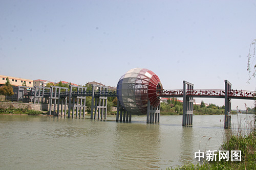 中新网4月17日电 江苏省淮安市南北地理分界线标志工程中的主体标志球已于近日完成外部施工,工人们正在进行内部装修。据现场施工人员介绍,整个地理分界线标志工程将于4月底全部完工。