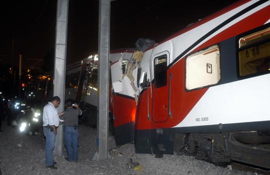 组图:墨西哥发生两列轻轨火车相撞事故