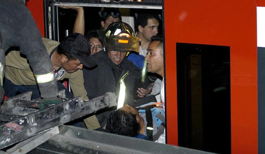 组图:墨西哥发生两列轻轨火车相撞事故(4)