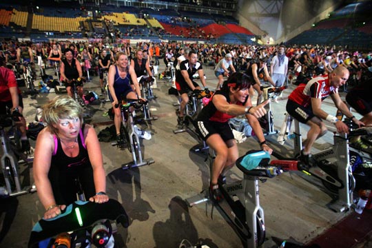 图:健身爱好者欲破多人动感单车世界纪录(2)