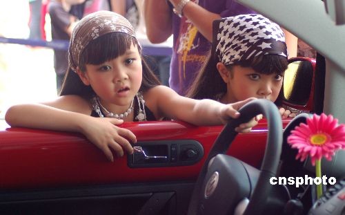 4月19日,广西第十五届汽车交易会上,一对打扮入时的双胞胎姐妹随父母观看车展,并客串起了车模,吸引众多摄影爱好者的镜头。