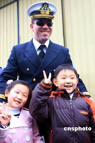 巴西海军军官与中国小朋友合影