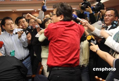图:台湾“立法院”再度爆发肢体冲突(4)