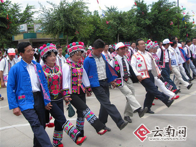 昨日,牟定第二届左脚舞文化节隆重开幕,县城街上随处可见身背龙头四弦的彝族小伙子和用彝族服饰装扮得漂漂亮亮的姑娘们,他们时而拨弄着新买的龙头四弦悠闲自在,时而手拉手,肩并肩,围起大圆圈,伴随着铮铮作响的四弦声和清脆悦耳的左脚调声,闪腰跌脚,拆步合脚,所有人的舞步整齐统一,充满活力,跳得黄灰四起,跳得震天地响。(王琳 摄)