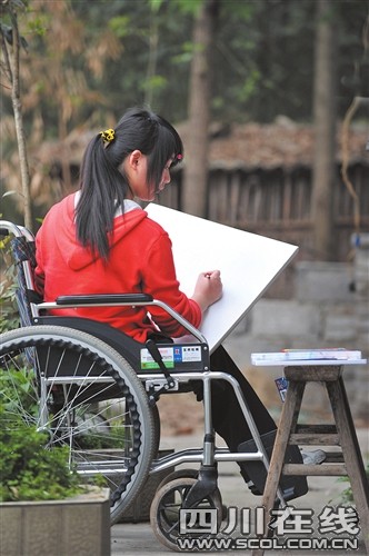 卿静文在家认真温习绘画。