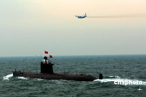 4月23日下午,为纪念中国人民解放军海军成立60周年而举行的海上阅兵在青岛附近黄海海域举行。长征6号、长征3号核动力潜艇和长城218号、长城177号常规动力潜艇依次接受检阅。