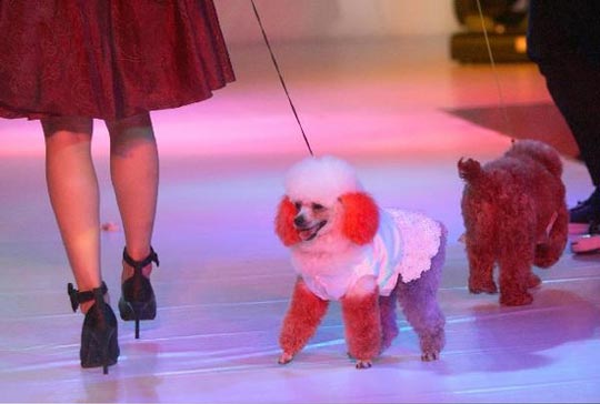 2009年4月22日下午,温州职业技术学院,服装表演专业学生平时上课的T型台当天换了“主角”,宠物狗们穿着大学生设计的时装秀来了一场别开生面的“宠物时装秀”,很是吸引眼球。