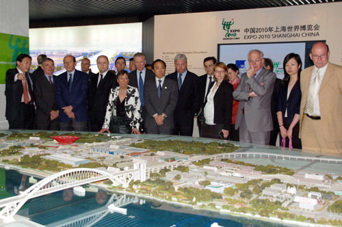 4月23日上午,法国国民议会会长贝尔纳·阿克耶在法国驻华大使苏和,全国人大代表、中国驻法国大使馆参赞吴杰以及上海市人大主任委员甘忠泽的陪同下,率领法国国民议会代表团访问上海世博局。上海世博局领导许伟国等陪同阿克耶一行参观了世博规划展示厅,并向其介绍了上海世博会的规划和筹备进展。