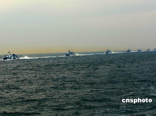 胡锦涛主席出席海上阅兵活动检阅海上战舰编队
