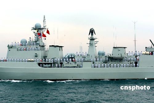 图为中国水面舰艇接受检阅。中新社发 宋吉河 摄