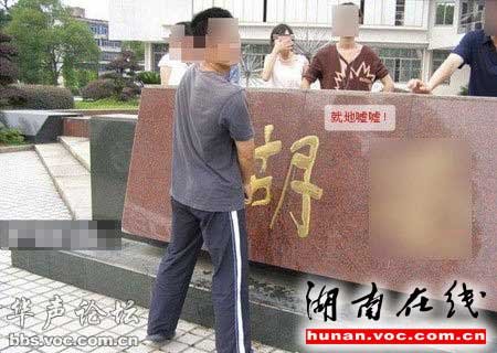 “太不可思议了,学生照毕业照居然在母校的校名上撒尿”,今日(27日),网友在华声论坛贴图爆料时称。