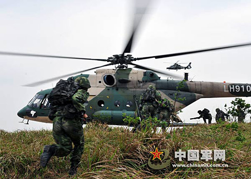 4月25日,在某陌生地域,解放军某部队正在进行一场激烈的模拟实兵实装对抗演练。突然,一阵轰鸣声由远及近,直升机在“敌”火力点后侧悬停,一个个神勇的作战队员恰似神兵天降,从10多米高的机舱中迅速滑降,着地后快速组成攻击作战队形,从侧后向“敌”心脏实施强行突击,撕开一道口子。