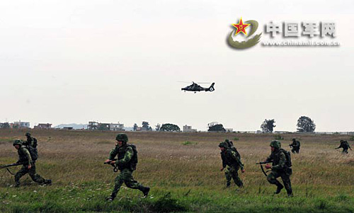 在武装直升机的“火力”掩护下,立体打击,快速进攻。彭贵 蒋争全 摄