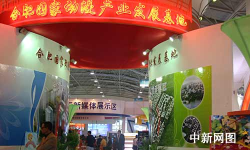 在安徽第四届中博会期间,文化产业吸引国内外众多客商的目光,签约项目、投资总额和引进资金均较往年大幅增长,成为本届中博会的新亮点。据介绍,近年来,安徽省文化产业增加值年均增长达30%以上;在金融危机背景下,仍然保持了大幅度的增长。文化产业也正在成为安徽新的经济增长点和发展新亮点。图为动漫展区——合肥动漫产业基地 作者:杨威