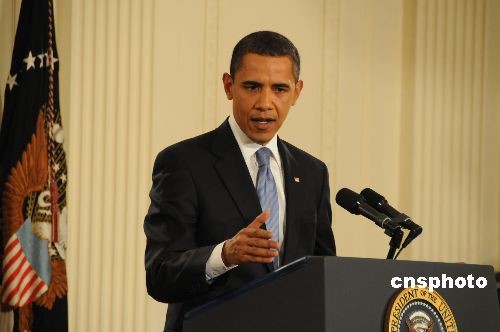 美国总统奥巴马四月二十九日举行其就任美国总统一百天新闻发布会,就防御猪流感、就任以来的内政外交等热点问题回答记者提问。奥巴马当日迎来执政一百天,媒体公布的最新民意调查显示,近七成美国人对其百日表现感到满意。中新社发 吴庆才 摄