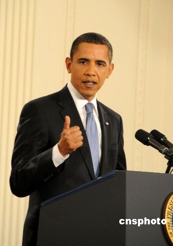图:奥巴马举行入主白宫百日新闻发布会(2)