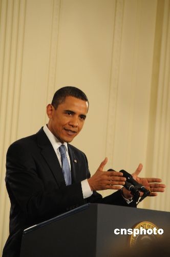 图:奥巴马举行入主白宫百日新闻发布会(4)