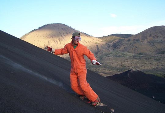 据英国媒体报道,尼加拉瓜境内的Cerro Negro火山现在成了极限运动爱好者们的一个新去处。他们在这座活火山上,踩上特制的滑板,一滑而下,体验超刺激的感觉。该地火山滑板运动已经吸引了数千名游客。