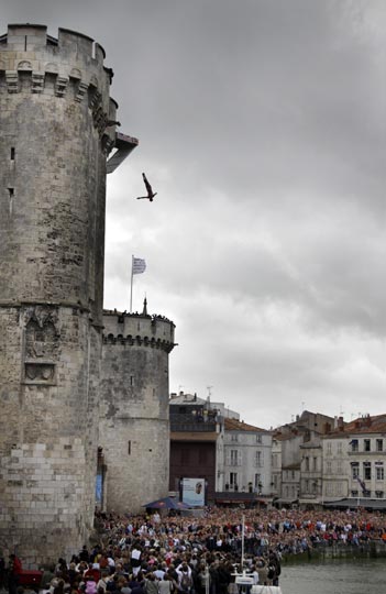 图:法国"悬崖"跳水赛 选手比技巧拼勇气(5)