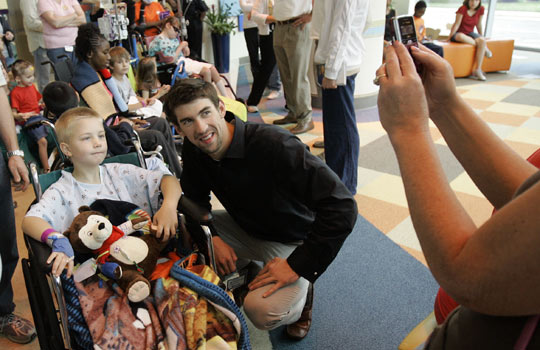 组图:“飞鱼”菲尔普斯医院看望患病儿童(3)