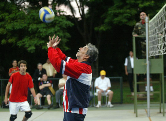 5月20日,在巴拉圭亚松森举行的一场排球赛中,巴拉圭总统费尔南多·卢戈披挂上阵,与前国家队球员同场竞技。