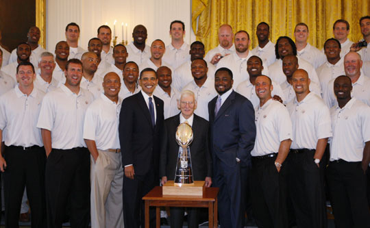 奥巴马白宫宴请超级碗冠军并获赠球衣(3)