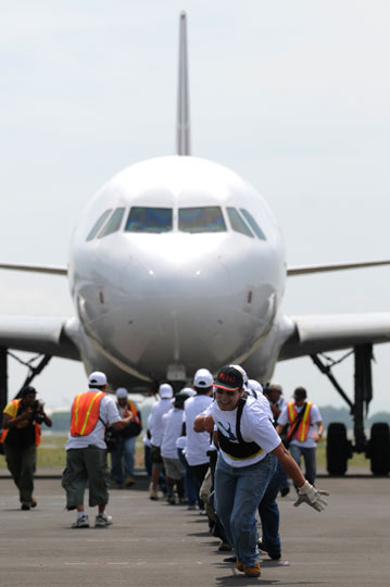组图:拖飞机大赛众力士力拖空中客车(2)