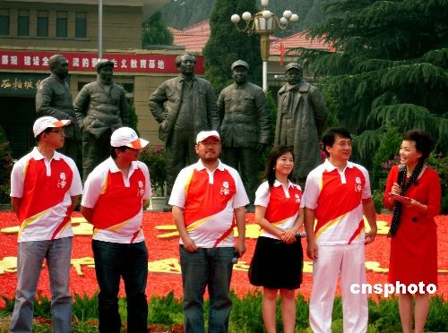 5月25日,国际巨星成龙率领新中国成立六十周年献礼歌曲《国家》主创团队走进河北西柏坡,举办“国家·爱”主题活动,重温“新中国从这里走来”。中新社发 刘广和 摄