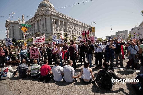 当地时间五月二十六日,美国加州最高法院七名大法官以六比一的压倒性投票宣布,维持去年十一月四日加州选民通过的禁止同性恋者结婚的八号提案。法院同时裁决,十一月四日前领取结婚证书的一万八千余对同性恋者婚姻合法。数百名反对八号提案的支持者一大早就来到了加州最高法院外等候法院的裁决。