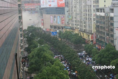 湖南株洲高架桥在雨中爆破拆除。中新社发 卓新民 摄