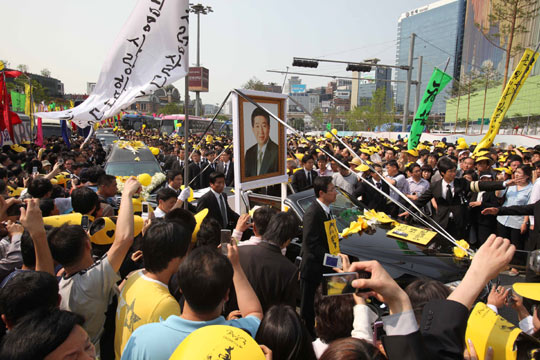 图:韩国首尔数十万民众为卢武铉送行(4)