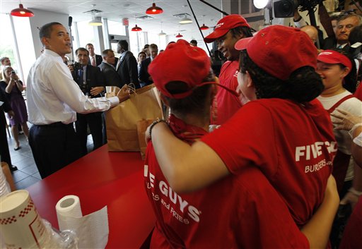 奥巴马外出为白宫员工买汉堡 排队时吃零食(图)