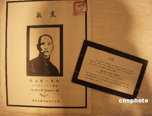 图为1925年4月5日旅法华侨追悼孙中山先生哀启及请柬。中新社发 耿军 摄