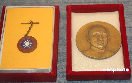 6月1日是孙中山先生奉安南京中山陵80周年。为缅怀中山先生的历史勋业,中国国民党党史馆精选一批文物、文献举办特展。图为由美国公司设计、制作仅1000枚的、奉安当天发给重要人物的“奉安铜质纪念章”(右)。该章的特别之处是背面篆刻的奉安日期还是原定的3月12日。因工程延期,奉安最终在6月1日举行。中新社发 耿军 摄