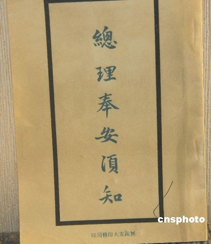 6月1日是孙中山先生奉安南京中山陵80周年。为缅怀中山先生的历史勋业,中国国民党党史馆精选一批文物、文献举办特展。图为奉安当天发给要员的《总理奉安须知》。中新社发 耿军 摄