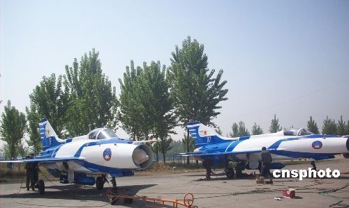 国庆60周年将在北京天安门广场盛大阅兵仪式上亮相的空中飞行表演机,已于5月中旬由中航工业成飞公司完成其喷漆涂装任务。中新社发 瞿玲芳 摄