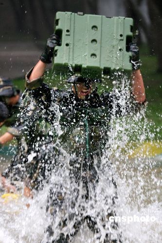 五月三十一日下午,香港多所大学的三十六位大学生代表在人民解放军驻港部队石岗军营训练场,观看侦察兵突击训练。中新社发 郑祚声 摄