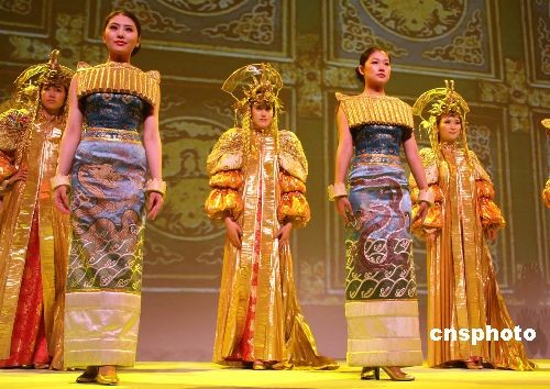 图为设计师胡晓丹将中国传统建筑的元素变化为服饰。中新社发 耿军 摄