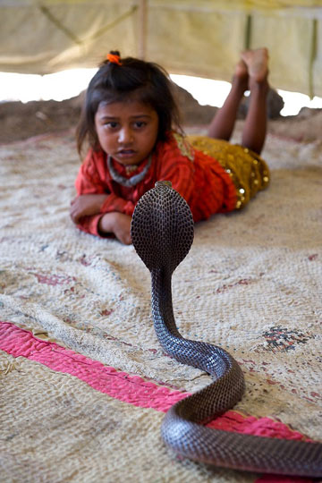 据英国媒体报道,印度一个部落里,所有的儿童都不怕蛇,因为他们在2岁时就开始和蛇接触。在经过长达10年的训练后,他们将成为专业的耍蛇人。