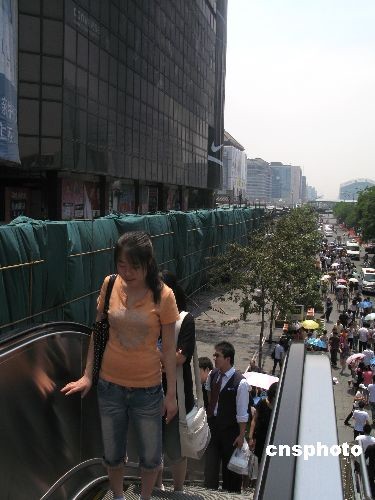 6月14日,北京西单购物中心发生火灾后,玻璃墙上的巨幅广告被熏烤得面目皆非,目前该商厦已经停业勘察和进行装修。14日凌晨1点45分,西单购物中心发生火灾,过火面积约110平方米,但未造成人员伤亡。中新社发 邹宪 摄