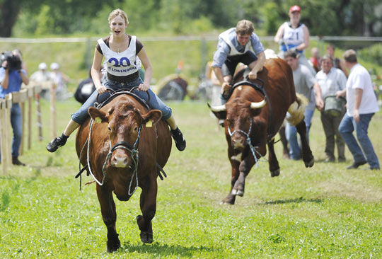 近日,在德国南部小镇Molberting举行了一场别开生面的骑牛大赛。