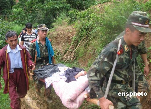 6月14日6时至9时,广东梅州市遭遇百年一遇的特大暴雨,该市部分地区严重受灾,交通严重受阻,通往灾区中心的7公里长道路180多处发生塌方。武警官兵第一时间赶到现场展开救援,当地卫生防疫部门工作人员开始进行消毒。截止16日下午14时许,一男性失踪者尸体被找到,武警官兵把遇难者遗体抬放到指定地点,现场的搜寻挖掘工作基本结束,救援武警、消防、公安干警也将陆续撤回。参加现场救援的武警官兵已连续在废墟中开展挖掘工作将近30多小时,挖掘土方300余立方,抢运废木头30余方。