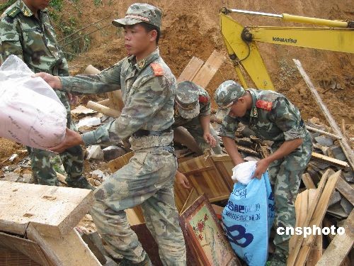 图:广东梅州遭暴雨袭击 武警官兵搜救失踪者(2)