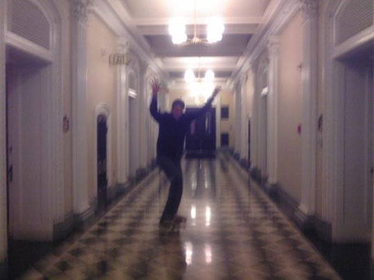 据英国媒体报道,一位名叫托尼·霍克的英国滑板运动职业选手近日在美国白宫玩儿了回滑板秀。这一次活动是庆祝父亲节的节目之一。41岁的霍克在大走廊和老行政办公楼旁边进行了这次表演。据悉,他的举动得到了白宫官员的批准。