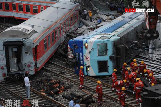 6月29日凌晨2:40许,由长沙开往深圳(K9017次)和铜仁开往深圳西(K9063次)的列车在湖南郴州火车站站内发生侧面冲突事故。事故已造成3人死亡,60余人受伤。目前,受伤人员已被送往市内各家医院救治。7:06时,现场清理工作基本结束,京广线上行(北上)已恢复运行。